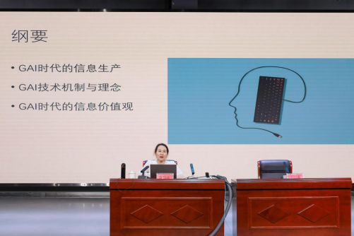 陈昌凤教授以国内外生成式人工智能应用与发展为切入点,结合数字虚拟主播、机器人记者等案例,从GAI(生成式人工智能)时代的信息生产、GAI技术机制与理念以及GAI时代的信息价值观三方面进行阐述,引领员工思辨GAI时代人类文明及信息价值取向。