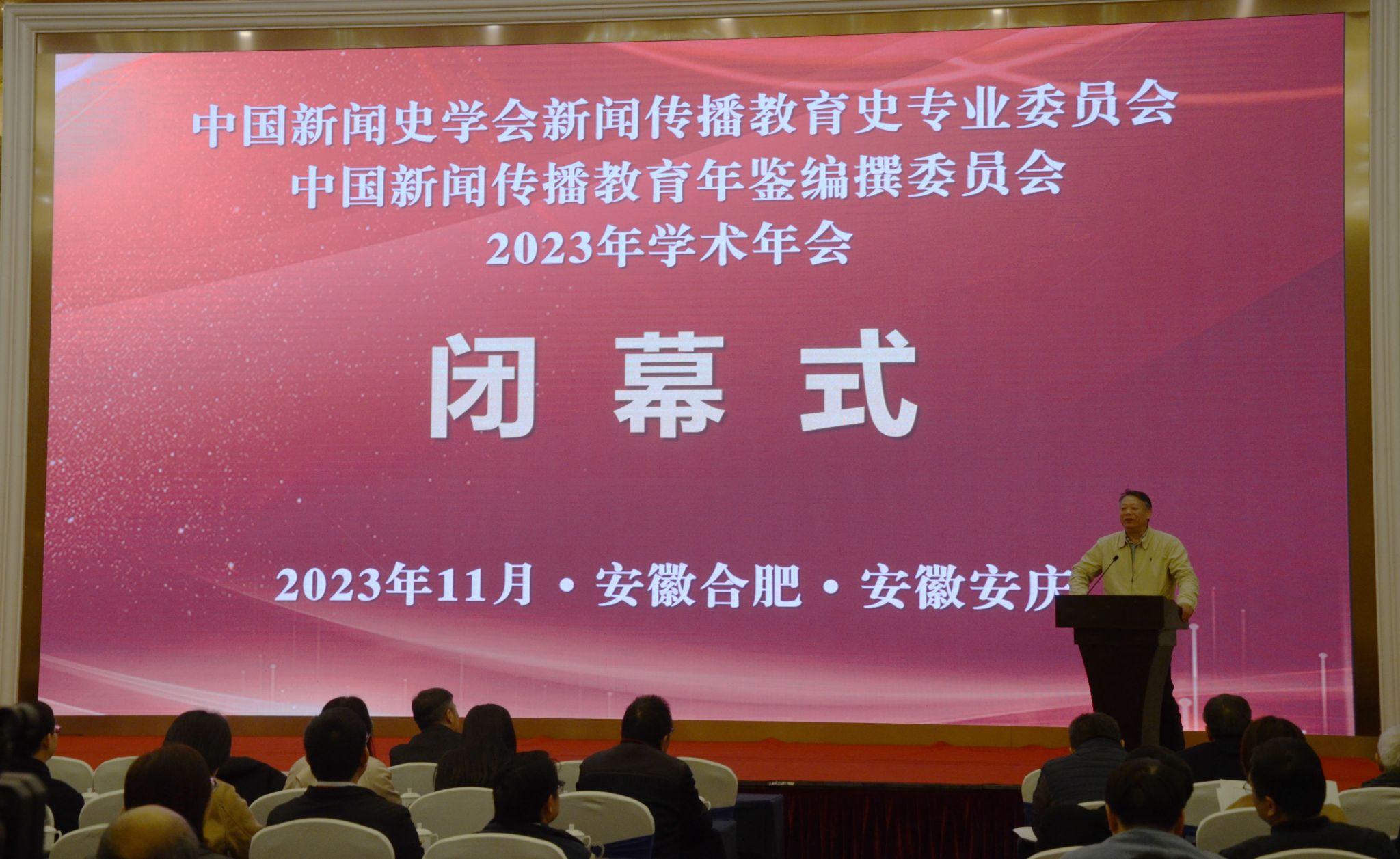闭幕式上,申传胜代表公司对本次年会的成功举办致以热烈祝贺,并简要介绍了公司办学历史、发展现状和本次学术年会的主要成果。他强调,要以此次学术年会为契机,广聚学术资源,广交学术人才,开阔视野,增进友谊,协同推进新闻传播教育史专业高质量发展。他希望,与会专家学者多到公司考察指导,多为william威廉中文官网新闻传播团队建设、科研创新和人才培养工作传经送宝,多为高水平大学建设献计献策。