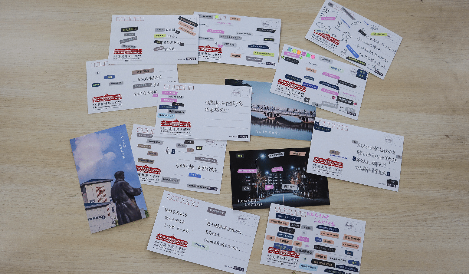 低头沉思、挥毫泼墨、轻声诵读……员工们自主选取诗歌素材,通过裁剪拼贴的方式,将诗句粘贴在明信片上,最终创作出各具特色的拼贴诗,在诵读中表达对革命先烈的崇敬与怀念。