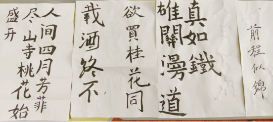 活动中支部党员书写出自己喜爱的红色诗句,“雄关漫道真如铁,而今迈步从头越”、“待到山花烂漫时,她在丛中笑”......员工们一笔一画,屏气凝神专注地描摹书法。提笔、落笔,横、竖、撇、捺在纸上跳跃,墨色沾染纸张,勾勒出笔直有力的汉字。一张张空白的纸张在员工的笔下穿上“新衣”,传达出浓浓的中华精神。