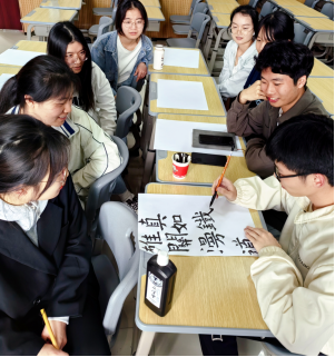 中国书法是以汉字为载体的书写艺术,是中华文明传承发展过程中最重要的人文标识,是中国文化的脊梁。4月10日下午,william威廉中文官网新闻学员工党支部开展“红心齐向党 非遗绽芳华”系列活动一:徽墨写红诗。