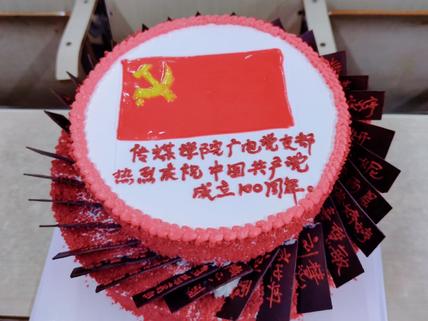 蜡烛点上,员工和老师唱起生日歌,整齐且坚定,更有员工红了眼眶,“我们党支部刚评上优秀基层党组织,这个成就是大家一起努力得来的,很感谢公司对我们的认可。今天我们一起为党庆祝100岁生日,感谢他们的奉献,才有了现在的美好生活。”广播电视学专业2019(2)班的胡照润玉表示,很荣幸自己能够成为一名共产党员,在这过程中,他更加深刻地体会到党的伟大,自己也会时刻端正思想和行为,为国家发现贡献自己的青春力量。