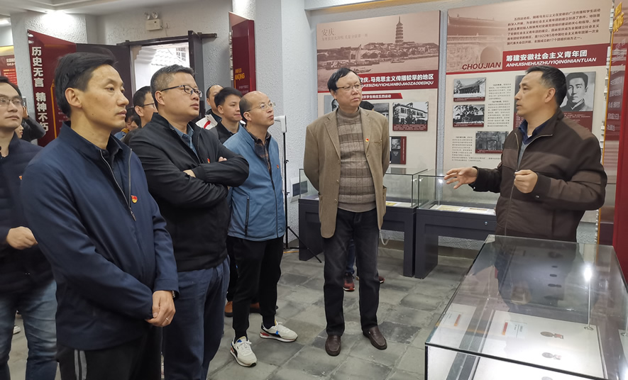 在中共安庆建党会议旧址陈列馆,大家仔细聆听了讲解员介绍的一个个鲜活的故事,观看了馆内一幅幅翔实生动的图片,了解了革命前辈召开建党会议、正式成立我省第一个城市党组织——中共安庆党支部的过程,重温了昔日安庆人民那段为寻求救国救民的真理、探索民族独立、人民解放的道路奋起斗争的革命历程,身临其境地感受了安庆人民义无反顾投身革命的伟大情怀。在庄严、肃穆的纪念馆中,全体党员面对鲜红的党旗重温了入党誓词。