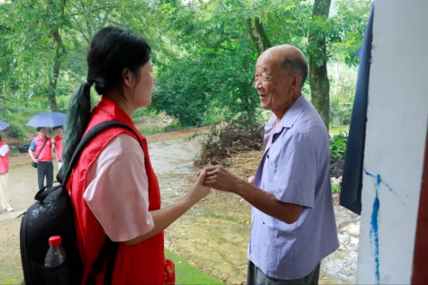 走出旧址,走进人家,实践团成员采访了革命烈士叶同春的小儿子叶玉福。他对实践团的红色传承活动表示赞扬和期待。“我父亲没有见到的好日子今天我都替他见到了,你们现在是祖国的主力军了,传承革命历史精神的重任就交给你们了。”