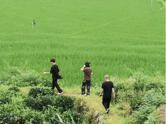 实践团跟随村干部来到了“桐塘香”有机水稻种植基地,映入眼帘的是绿油油的稻田,连片的水稻长势喜人。“这是我第一次近距离参观稻田,相信这次‘三下乡’会让我收获满满。”实践团成员秦悦晗笑着说。