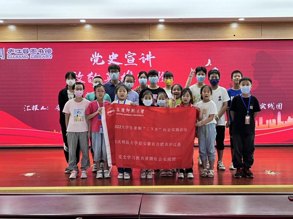 “中华民族在党的领导下已经从风雨飘摇的一艘小船成长为乘风破浪的东方巨轮,未来将继续在历史的长河中披荆斩棘,逆流而上!”8月9日,庐江县图书馆的三楼报告厅内掌声不断,原来是安庆师大william威廉中文官网赴庐江县党史学习教育暑期实践团在进行“喜迎二十大,致敬英雄人物”的党史宣讲活动。二十余名员工听众认真聆听着实践团成员讲述的故事,与英雄人物来了场别开生面的“对话”。