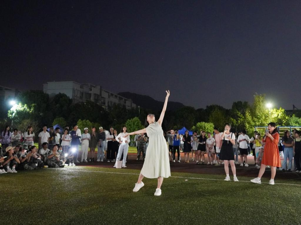 16首不同风格的歌曲表演,给东门操场带来了不一样的色彩,路人们纷纷停下脚步观赏,现场掌声不断。新闻传播学类专业2021(5)班的仇思婕在绵长的歌声里翩翩起舞,用一曲《大鱼》将整个活动推向高潮。“我在寝室里排练了两个晚上,虽然因为太紧张忘了一点动作,但看到同学们的反馈已经很开心了。”仇思婕坦言,因为今天这个活动,看到了同学们不一样的一面,她也期待着接下来与大家相处的日子。