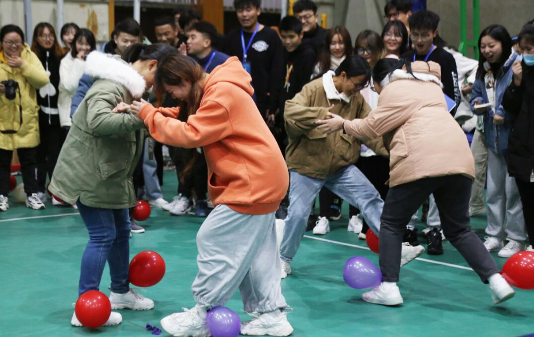 摸石过河项目考验参赛选手的灵活性和比赛技巧,选手在确保脚不落地的前提下,凭借3个塑料板到达终点。袋鼠跳项目要求每位参赛选手双腿套上袋子,蹦向终点。踩气球比赛时,每位参赛选手的脚踝处绑上两个气球,在规定区域内气球不被踩爆、坚持到最后的获胜。独特的比赛形式引起了员工们的热情欢呼,场下观众掌声、欢呼声接连不断。