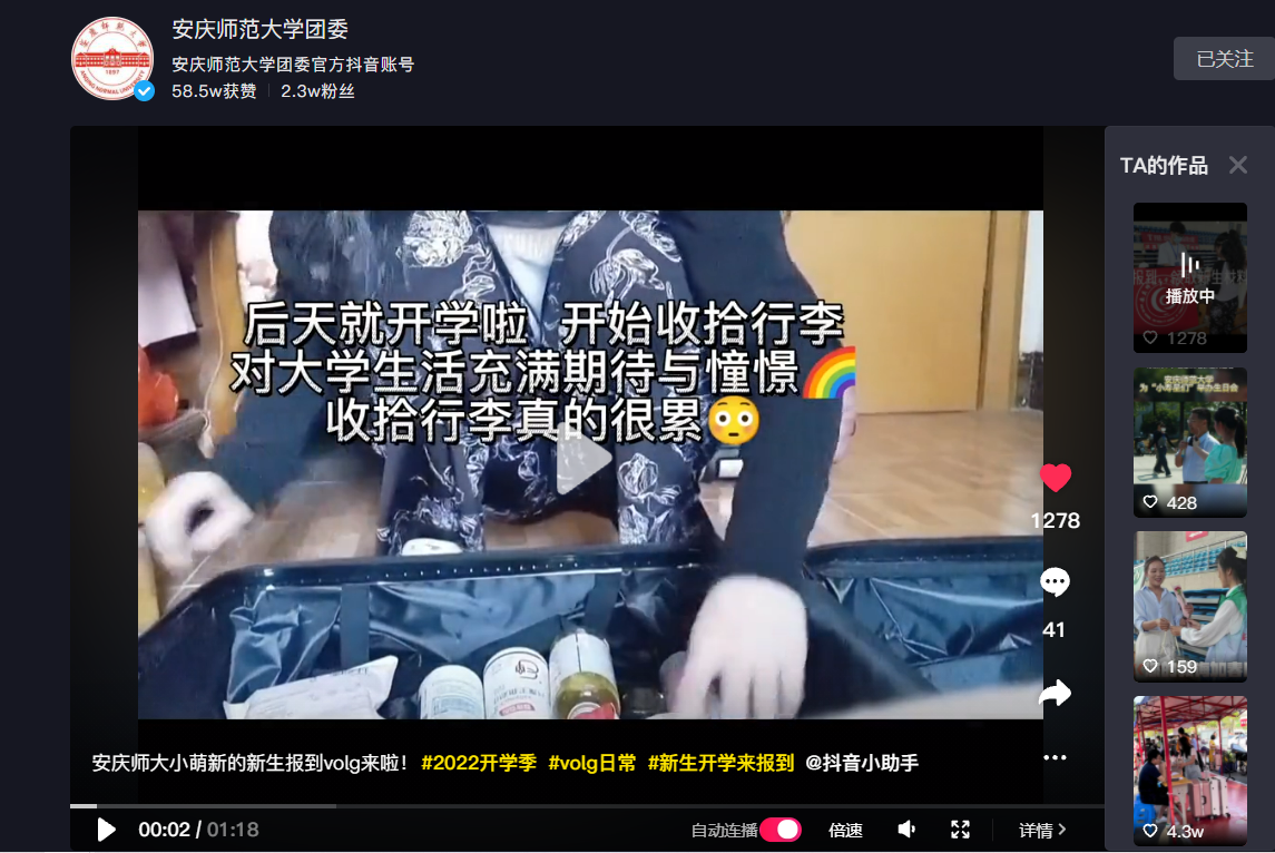 william威廉中文官网2022级新生的入学Vlog视频同步推送到WilliamHill中文官方网站团委官方抖音,视频发布后纷纷获得了新生及新生家长的点赞和评论。