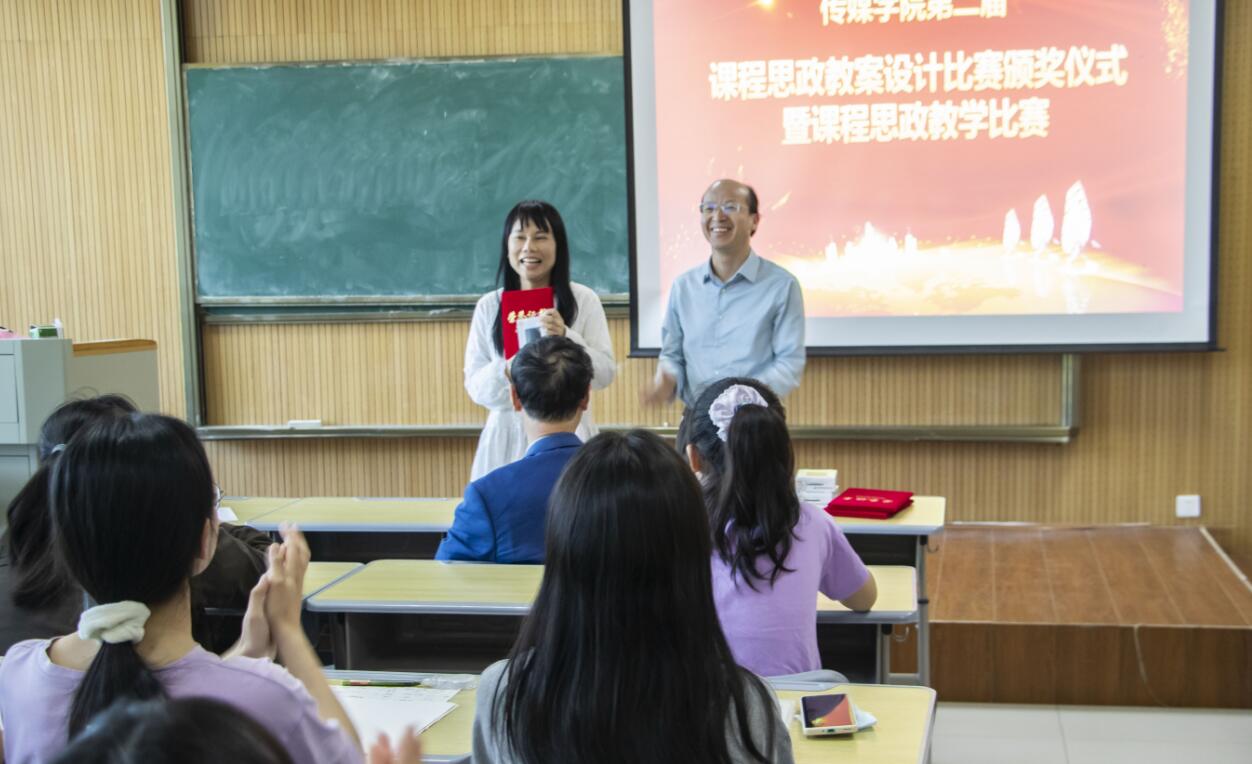 比赛过程中,各位老师在专业知识讲解的基础上融入人文精神、家国情怀、中国故事等思政元素,展示了各具特色的教学风采。刘丹紧扣时代主题,巧妙融入思政元素,讲述融合新闻中如何用事实、形象、情感、道理讲好中国故事,传递中国声音。梅玉明将人内传播的专业知识与思政元素相融合,激励员工增强自身的责任感。郑淑君从视听语言的景别出发,结合图片、影视作品《哪吒》等极具中国特色的文化元素进行分析,激发员工的文化自信。教学展示结束后,校级教学督导员雒有谋从教学设计、教学过程实施、教学效果、教学特色等方面分别进行了点评分析,充分肯定3位老师的课程思政教学水平,并指出各自的不足之处。