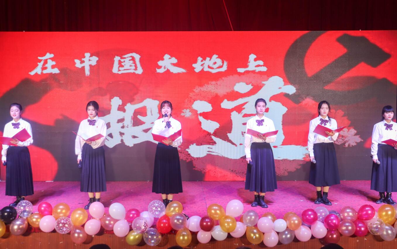 “我们是中国传媒学子,在中国大地上向您报道!”公司主持队身穿白衫黑裙,用视听结合的方式带来演讲《在中国大地上报道》,引领现场观众回忆中华人民共和国的历史性变革和成就,层层递进,慷慨有力。“听着他们的朗诵,中国共产党成立100周年的百年党史仿佛历历在目。” 新闻传播学类专业2021(6)班的杨悦表示这是她印象最深刻的节目,朗诵者们字字铿锵的朗诵激发了她的爱国责任与爱党情怀。