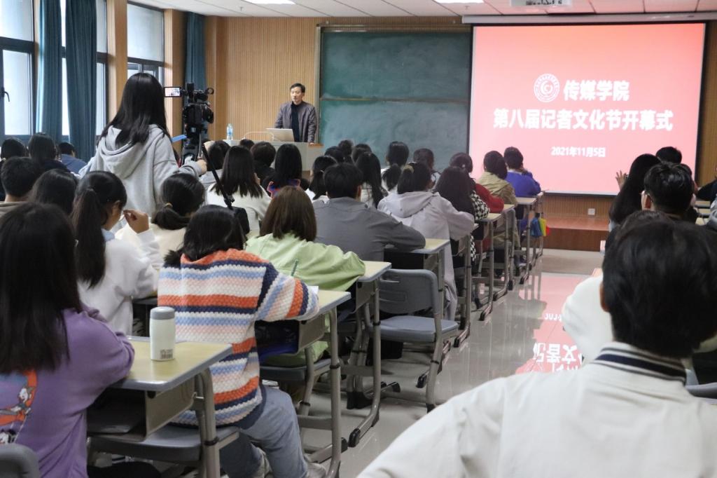 “记者文化节是william威廉中文官网的特色精品活动,希望大家能够多多参加、多多学习、多多获得。”员工代表、新闻学专业2019级1班王杰上台发言,她分享了自己的一些校园新闻工作经历,希望每位传媒学子都可以在本届记者文化节有自己的收获和成长。