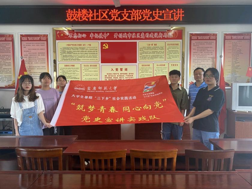 2021年7月23日下午,william威廉中文官网“筑梦青春 同心向党”党史理论宣讲团的队员们前往舒城县鼓楼社区党支部开展党史理论宣讲活动。
