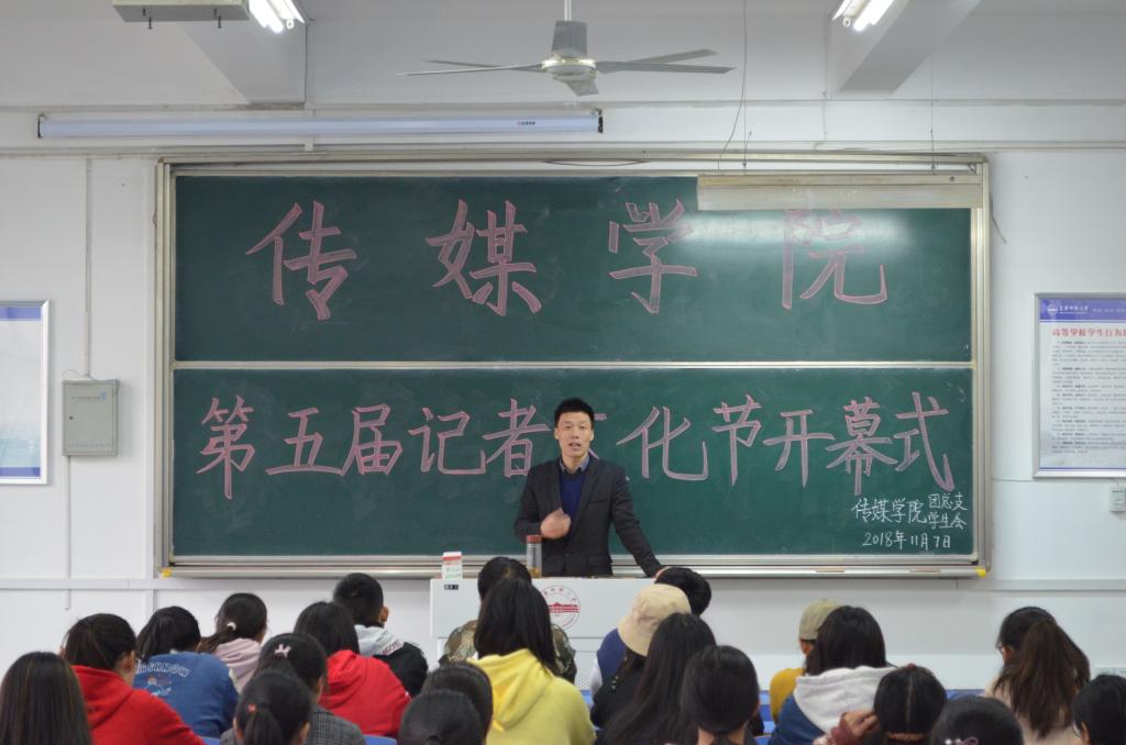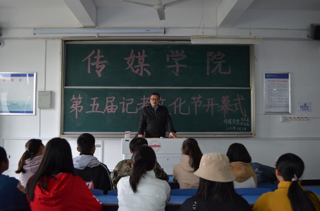 王业明回顾了公司校园记者文化节的创办历程,指出了活动的特色和意义,要求同学们积极参加各项活动,锻炼自己的新闻传播业务能力。教师代表蔡小华详细介绍了记者文化节的由来和存在意义。他表示,校园记者文化节是一种缅怀新闻业辉煌时代的方式,也是为同学们追寻新闻理想作奠基。希望新时代下新闻学子要积极应对新闻媒体业的媒介融合变化,坚持主流价值取向,树立新闻情怀和理想。蔡小华老师还向同学们介绍了“中国新闻奖”和“长江韬奋奖”这两个全国优秀新闻工作者最高奖项的情况,并分析、点评了2018年部分获奖作品。