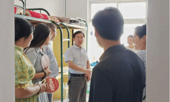 8月30日上午,公司党委书记詹德全、副经理王业明、党委副书记张万茂,以及新生辅导员一起走访了2023级新生宿舍。