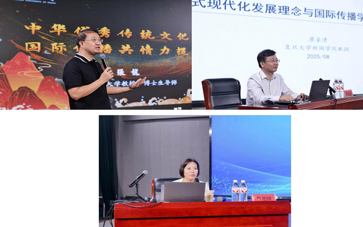 8月7日,杭州师范大学施旭教授分享了其独创的“文化话语研究”理论体系。他主张通过文化话语研究,揭示不同话语体系间的权力关系,为发展中国家学者提供理论工具,推动建立更加多元、平等的全球传播秩序。郑州大学董广安教授系统阐述了穆青的新闻理念与实践贡献。她结合穆青的采访事迹,生动展现了穆青在推动新华社现代化、提升国际影响力方面的卓越贡献,其思想对当下加强国际传播能力建设具有深刻启示。北京师范大学许小可教授和吴晔教授以《AIGC时代国际传播“感宣评”体系的重构与优化》为题,阐述了社交机器人作为“智能感知器”在数据爬取、社群关系探知中的优势,并介绍了人机协同的内容生成机制,分享了团队在计算传播领域的三项实践和中华文化海外议程设置及主流媒体短视频人格化传播的研究成果。