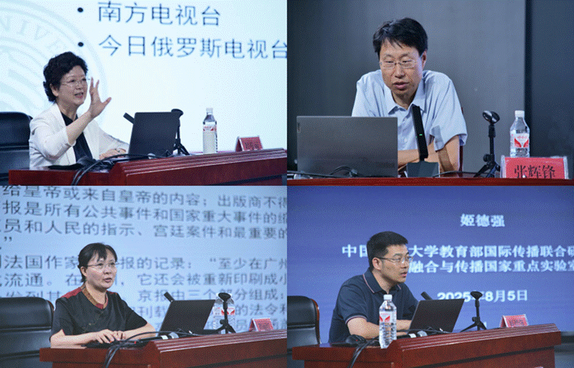 8月5日,北京大学程曼丽教授在讲座中指出,国际关系格局变革与新技术革命两大时代变量相互作用,深刻影响国际传播格局。当前中国面临复杂严峻的国际舆论环境,提升国际传播能力尤为迫切。中国人民大学张辉锋教授运用内容分析法与建模法,结合霍夫斯泰德文化维度理论,深入探讨文化距离对海外华文媒体涉华报道的影响机制。辽宁大学程丽红教授深入分析俄国人如何通过清廷发行的《京报》构建对华认知框架,为理解近代中西知识传播提供了新视角。中国传媒大学姬德强教授指出,主流国际传播理论多具西方中心主义与资本主义底色,遮蔽了全球信息流动中的不平等。中国基于自身革命实践发展出斗争性话语体系,基于社会主义建设实践发展出构建人类命运共同体的超越性和包容性话语体系;人类命运共同体这一规范性理念为构建国际传播新秩序提供了想象性框架。