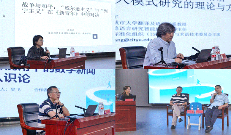 8月11日,华东师范大学吕新雨教授在讲座中探讨了“威尔逊主义”与“列宁主义”在一战后世界秩序构想中的对立,并分析了二者在《新青年》杂志中的思想博弈。她指出,从最初推崇威尔逊的“十四点原则”,到五四前后李大钊等人转向赞颂列宁主义的和平主张,中国知识分子经历了深刻的思想转变。这一过程不仅体现了对西方“公理”幻灭和对社会主义的认同,也推动了马克思主义在中国的传播,深刻影响了中国革命的路径选择。香港城市大学的方称宇教授提出了基于语料库的媒体话语介入模式研究的理论与方法,并考察我国当下的国际传播政策与策略。他将国际传播的政策和策略框架归纳为三个层面,指出国际传播研究需要结合传播学与跨文化话语分析并融合语言学理论与语料库方法,解决跨文化话语策略问题。浙江大学吴飞教授从认知非正义视角探讨数字新闻认识论的转型。指出传统新闻业存在对边缘群体的证言与诠释非正义,数字时代在修复部分非正义的同时,也带来算法偏见、信息污染等新挑战。提出新闻业应以“认知正义”为核心规范,承担“捉虫者”角色,通过客观真实、情感关怀、价值包容与程序公平的实践,修复认知伤害,重建社会信任与合法性。吴飞教授讲座结束之后,上海大学沈荟教授、上海财经大学王学成教授分别与之对谈,将话题进一步引向深入。