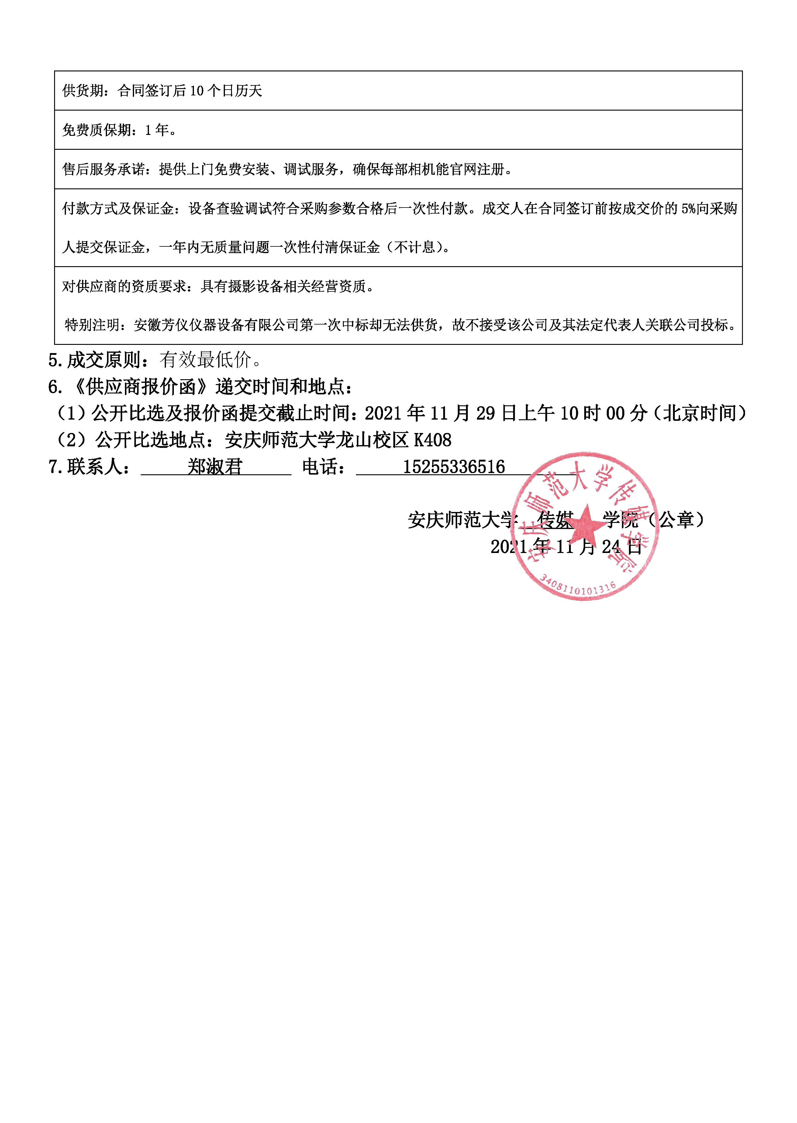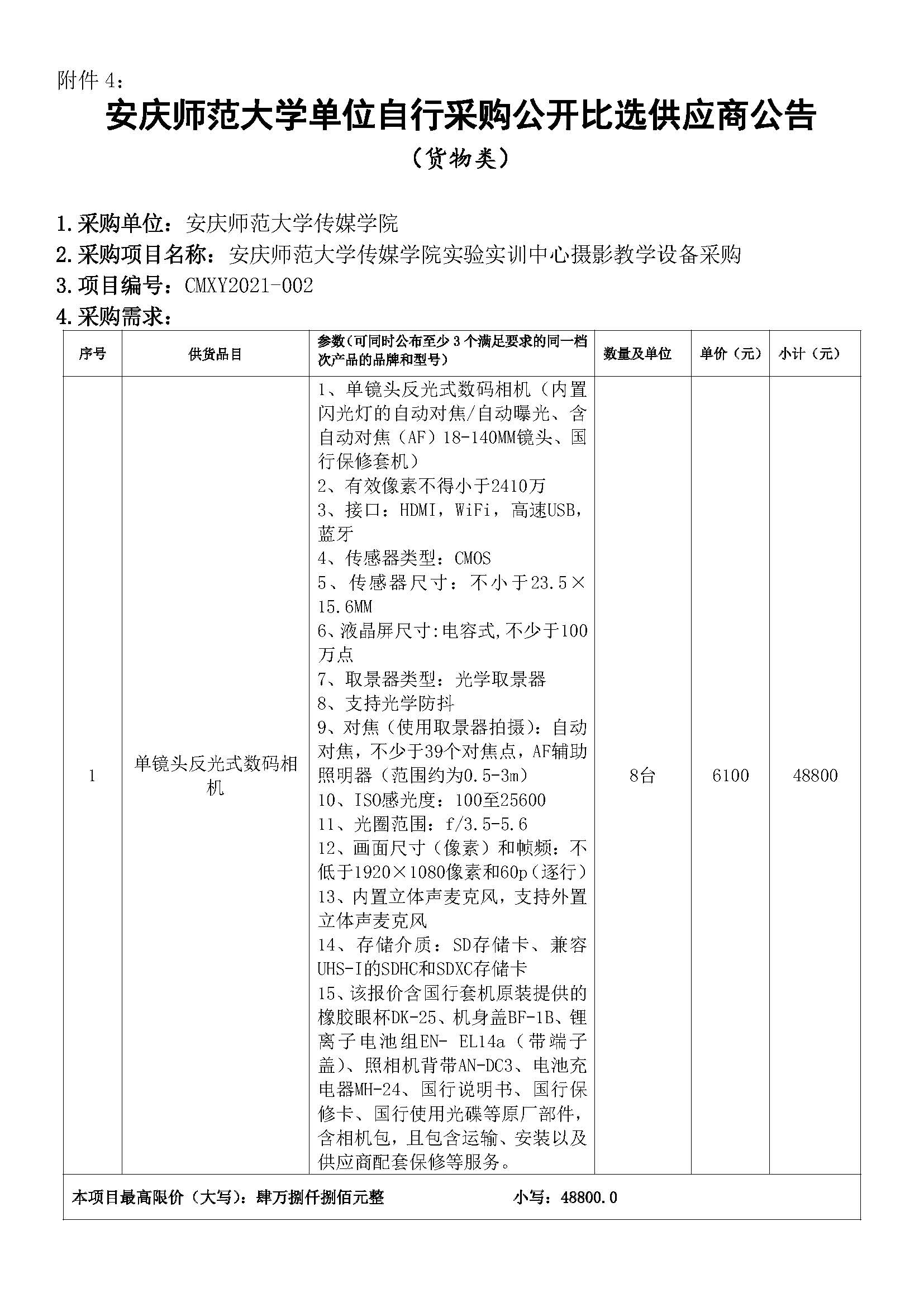 william威廉中文官网摄影教学设备采购二次公开比选供应商公告