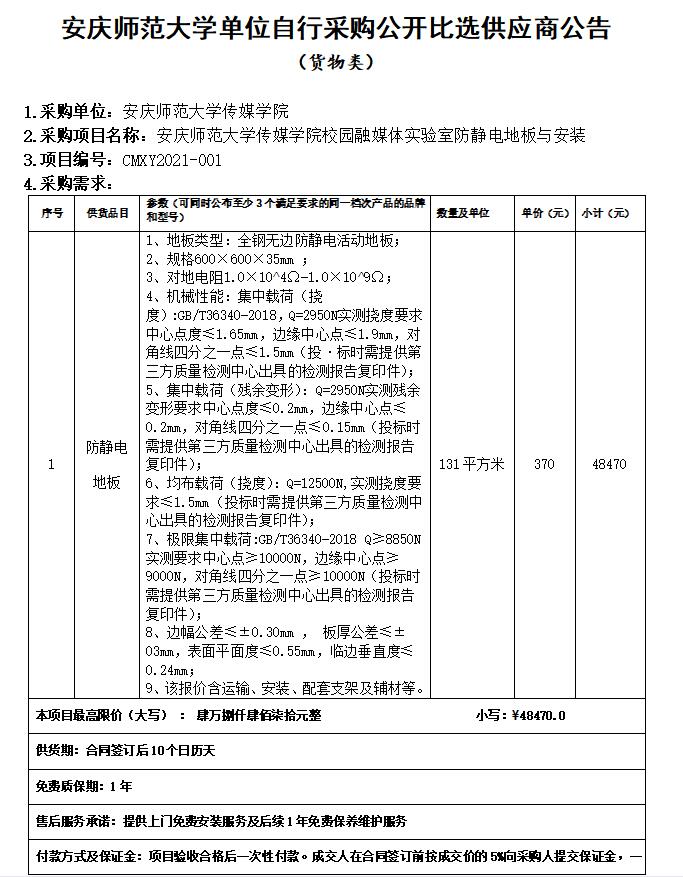 william威廉中文官网关于采购防静电地板的公开必选供应商公告