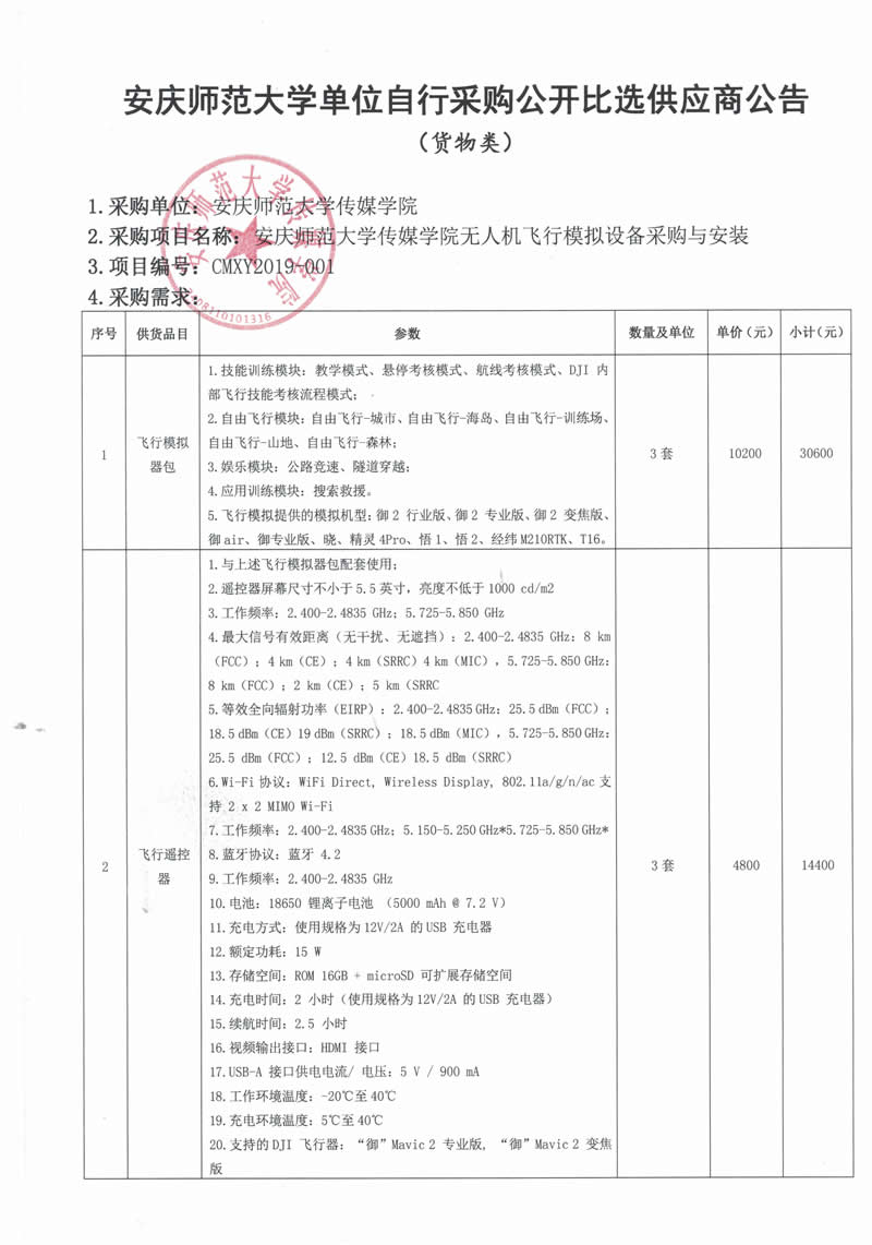 william威廉中文官网无人机飞行模拟设备采购与安装公开比选公告