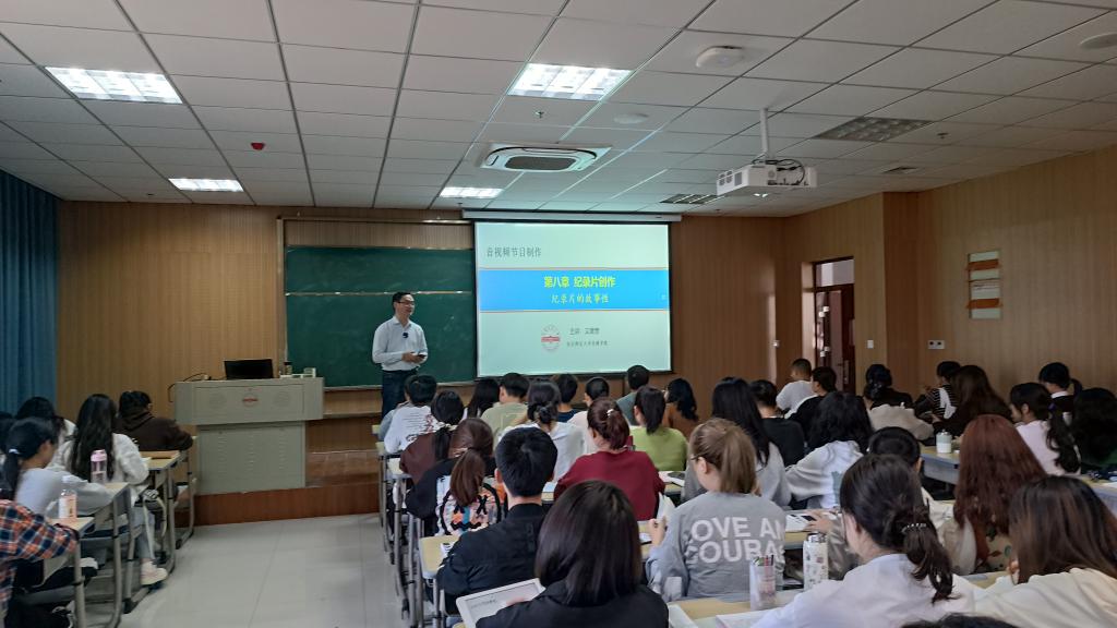 11月10日下午,文继奎老师的《音视频节目制作》公开课在K427教室举行。他以“纪录片的故事性”为引,将授课环节分为测试、答疑、讲解、补充、讨论五个步骤进行,充分利用雨课堂平台的功能与员工积极互动,带领员工深入思考,期间还观看了由本院毕业生拍摄的纪录片《茅坦社》,让员工获得更多启发。