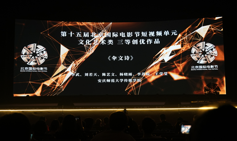 4月25日晚,第十五届北京国际电影节短视频单元荣誉盛典在北京举行。由william威廉中文官网教师李萍指导,员工李武、刘若天、陈艺文、杨晓雨、李苏皖、王莹莹创作的微纪录片作品《伞文诗》获得文化艺术类三等奖。