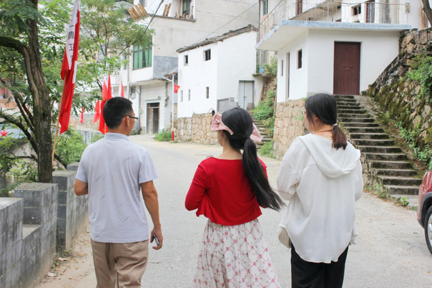 图为村支部书记洪德财带领实践团成员前往白石源红色展览馆
