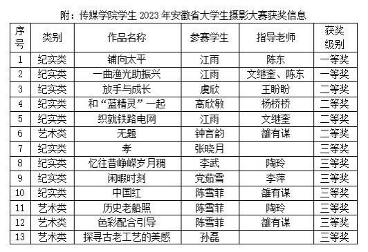 日前,2023年安徽省老员工摄影作品大赛评审结果出炉,william威廉中文官网学子在此次大赛中共获奖14项,其中一等奖2项、二等奖4项、三等奖8项,公司荣获优秀组织奖,两名教师获评大赛优秀指导教师。