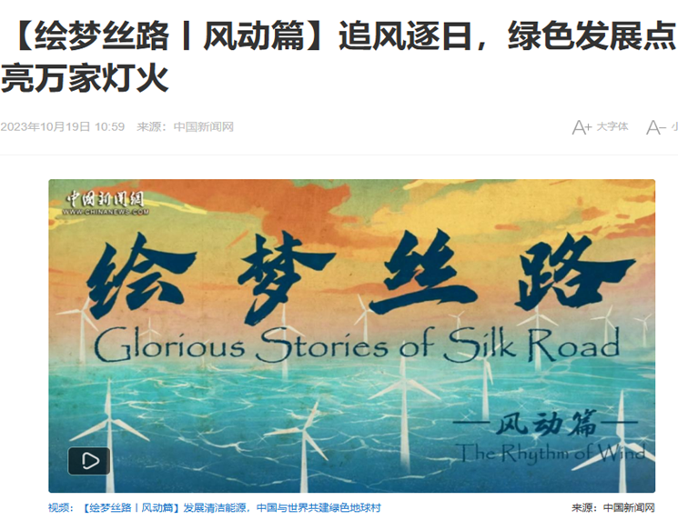 2023年是“一带一路”倡议提出十周年之际,作为中国主场外交的重要时间节点,亟需通过创新性报道展现十年间的实践成果。中国新闻网制作推出《绘梦丝路》系列中英双语融创视频及文字稿10期,《【绘梦丝路|风动篇】追风逐日,绿色发展点亮万家灯火》为该系列作品中的第五期,该作品紧扣“绿色发展”这一核心命题,将清洁能源合作置于“双碳”目标与全球气候治理的宏观背景下,既回应了国际社会对中国能源转型的期待,又为“一带一路”高质量发展注入生态内涵。此外,面对西方媒体长期构建的 "债务陷阱论"" 环境破坏论 " 等话语霸权,中国媒体亟需突破传统对外传播框架。该作品通过具象化案例解构抽象政策,以可视化叙事破解认知壁垒,在技术赋能与文化浸润中构建新型国家叙事范式。